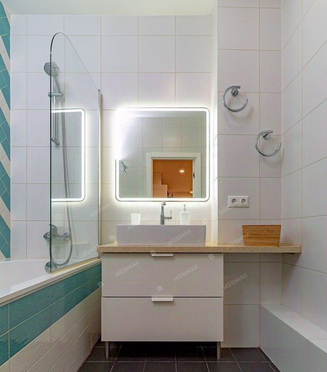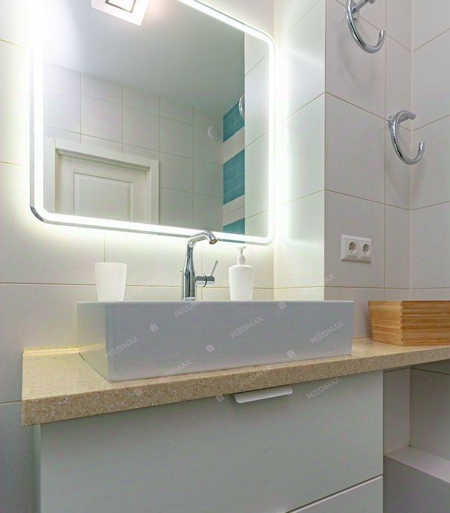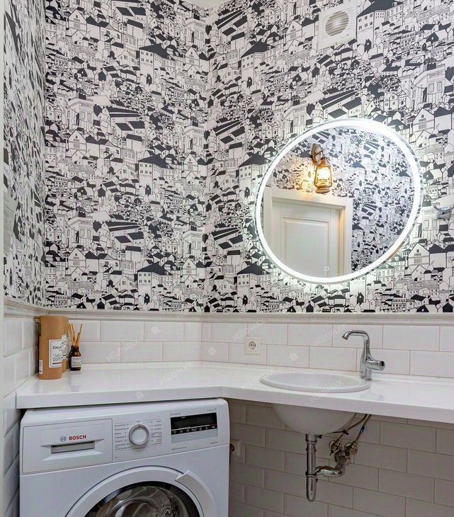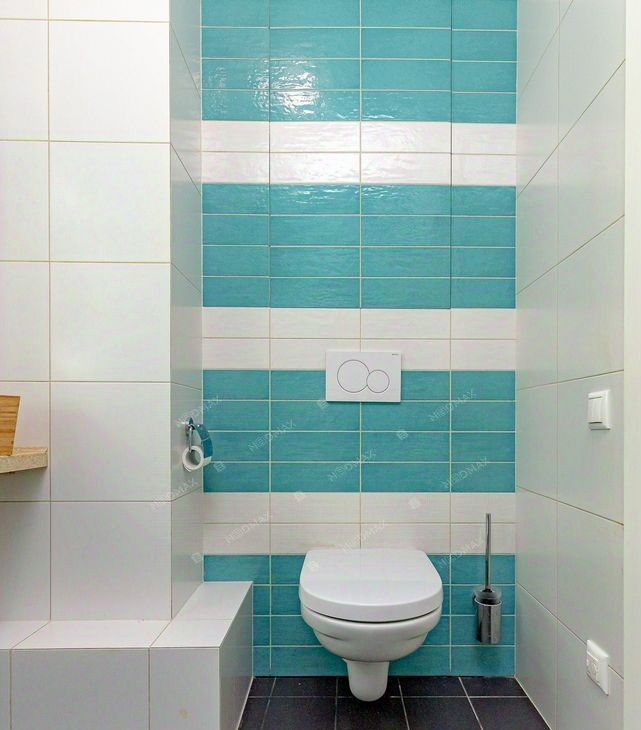 -Компактный санузел (3,1 м²) со стиральной машиной и автономным водонагревателем.