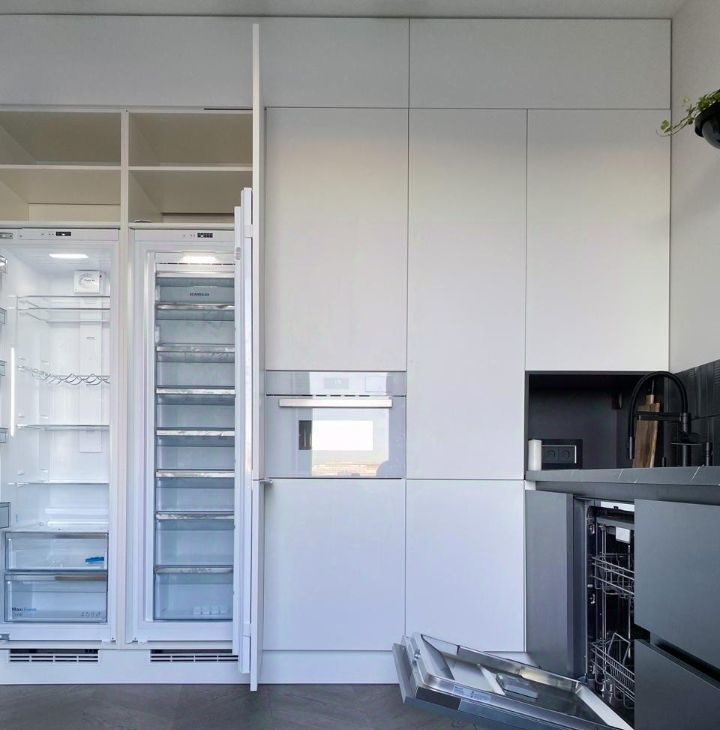 Удобная и функциональная планировка: просторная кухня-гостинная со встроенной техникой (холодильник, варочная панель, посудомоечная машина, духовой шкаф), две изолированные спальни с окнами на юго-запад в тихий двор без машин, два санузла, гардеробная, продуманная система хранения