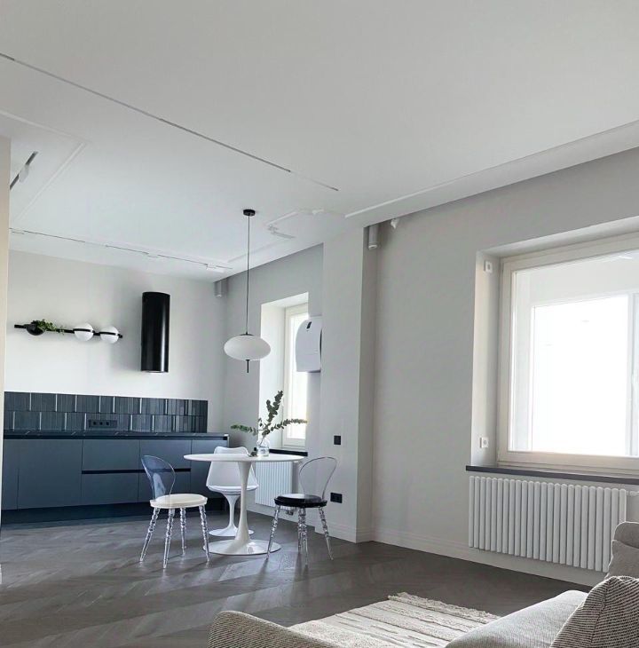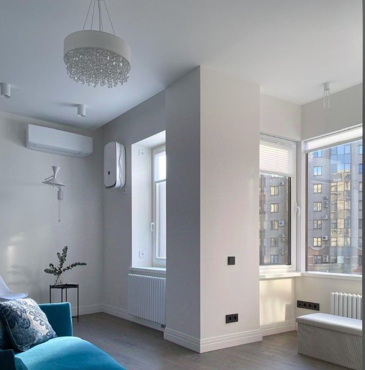 Во всех комнатах установлены рекуператоры, обеспечивающие приток чистого воздуха, в спальнях дополнительно есть кондиционер. В квартире сделан ремонт по дизайн проекту из качественных материалов, на полу дубовый паркет, теплый пол в санузлах