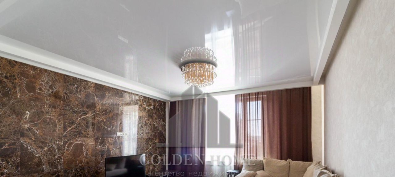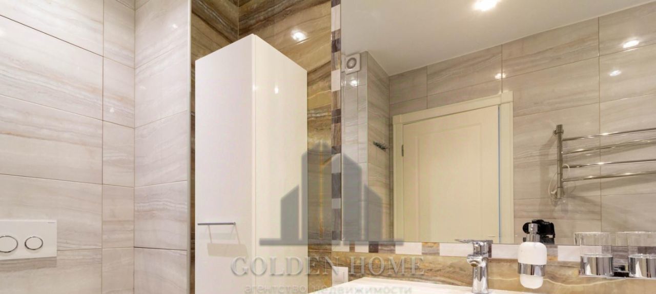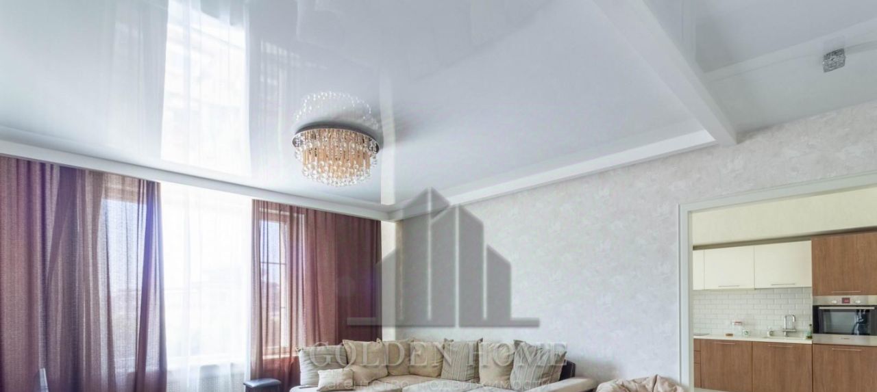 Ремонт квартиры выполнен в светлых тонах, с использованием дорогих итальянских и немецких материалов (из мрамора выполнено панно на стене в гостиной, натуральный паркет).