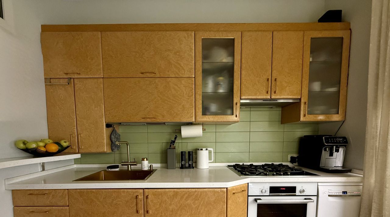 На кухне стоит только надёжная техника, которую я подбирала очень тщательно: Miele, Bosch, Neff, Liebherr. Она служила мне безупречно и остаётся новым хозяевам.В санузлах — сантехника Jacob Delafon, красивая и качественная.