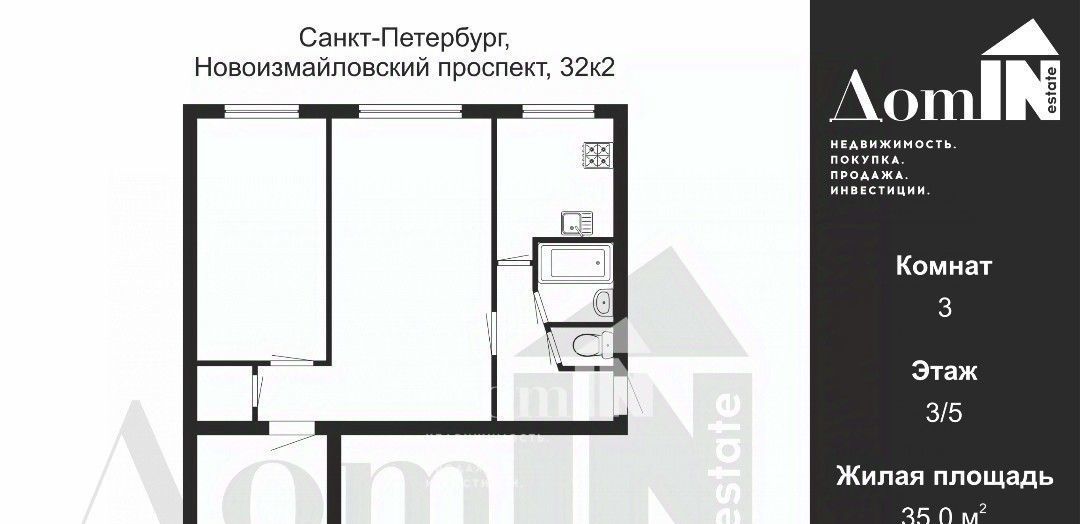 3-к кв. Санкт-Петербург Новоизмайловский просп., 32К2 (56.0 м²)