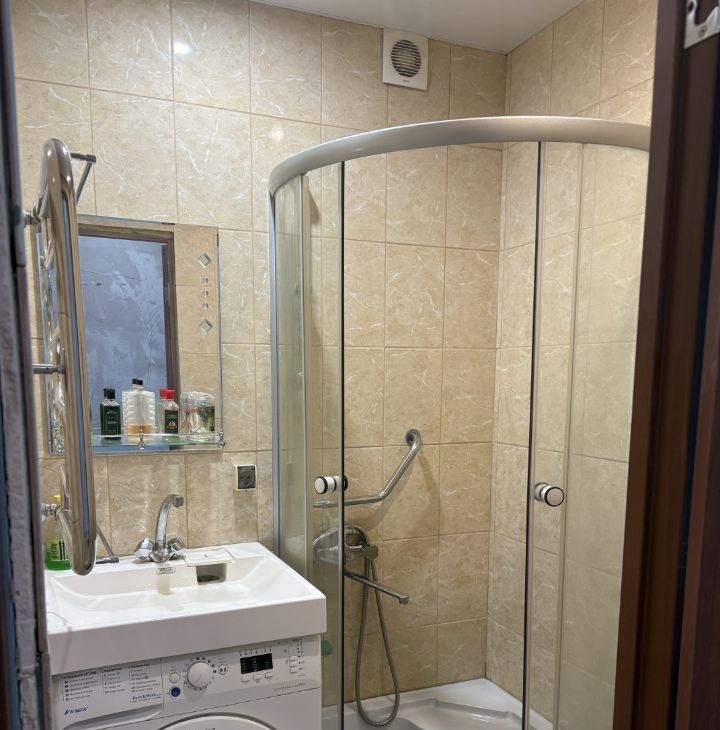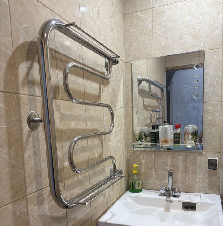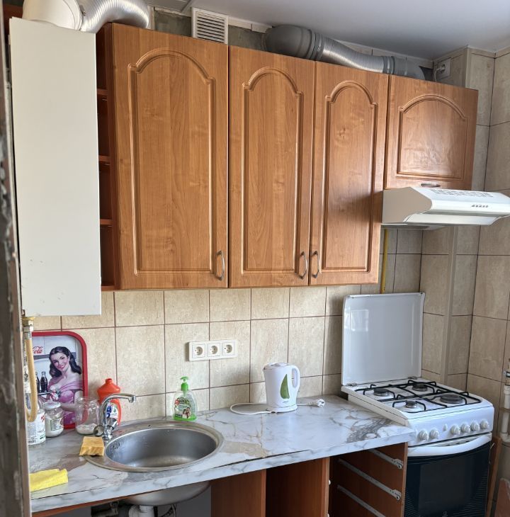 Кухня оборудована газовой плитой и холодильником, есть шкафы для хранения. Санузел раздельный, выполнен в светлых тонах. В квартире имеется балкон, который станет отличным местом для отдыха.