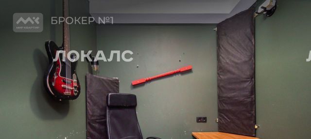 К гостиной примыкает небольшой звукоизолированный кабинет , с правильной аккустикой помещения для записи музыки, подкастов или работы со звуком. Можно использовать как комнату для игры в компьютер спрятавшись от семьи.