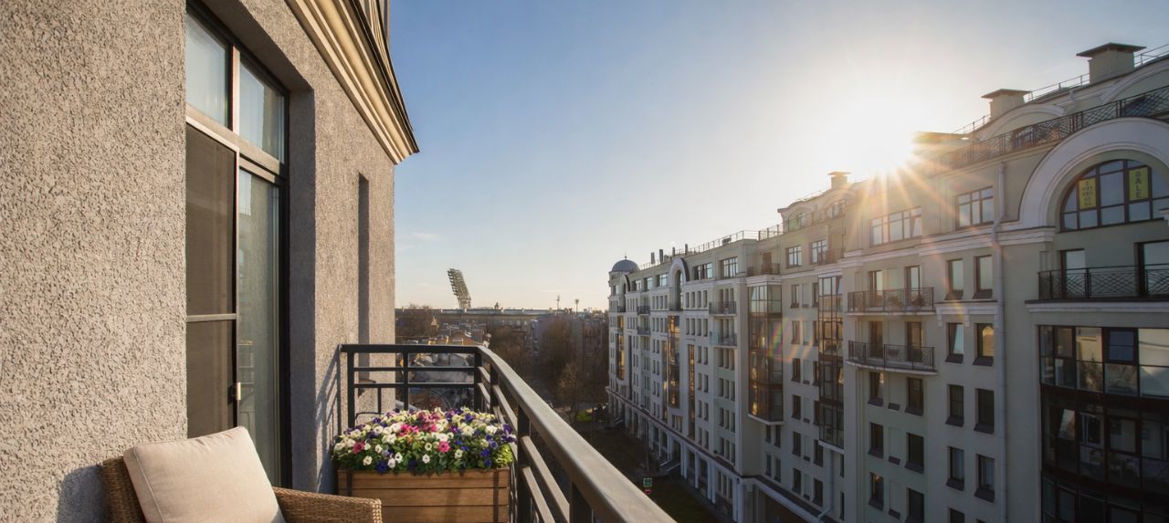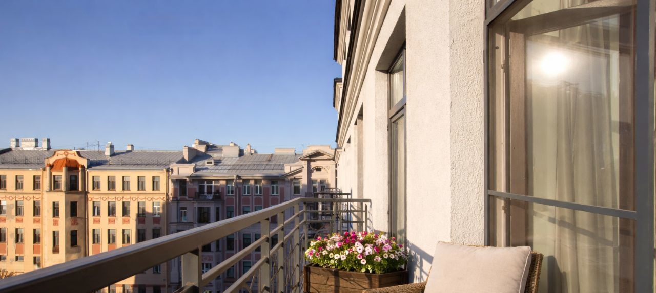 Очень удобная планировка: отдельная кухонная зона с островом, гостиная комната, две спальни, гардероб, две полноценные ванные комнаты с душем и ванной, просторный балкон с прекрасным видом на тихую улицу Петроградки.