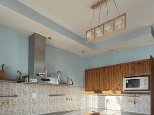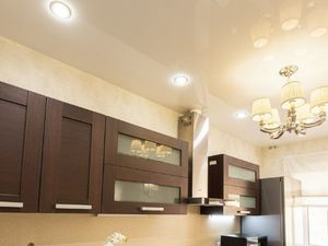 Кухня с залом соеденены, но наличие раздвижных дверей даёт возможность разделить кухню и зал.