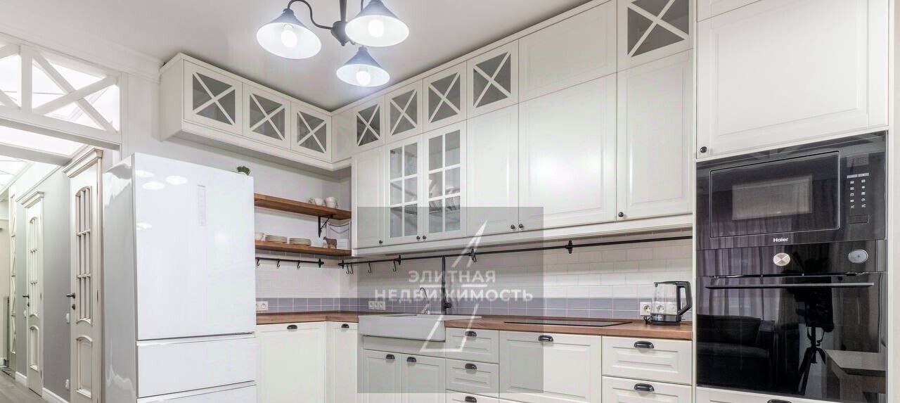 Кухня-мечта: Большая отдельная кухня станет центром притяжения. Она полностью укомплектована встроенной техникой (духовой шкаф, СВЧ, посудомоечная машина, холодильник) и украшена декоративным камином, создающим особую атмосферу. Здесь есть все для приготовления ужина и дружеских посиделок.