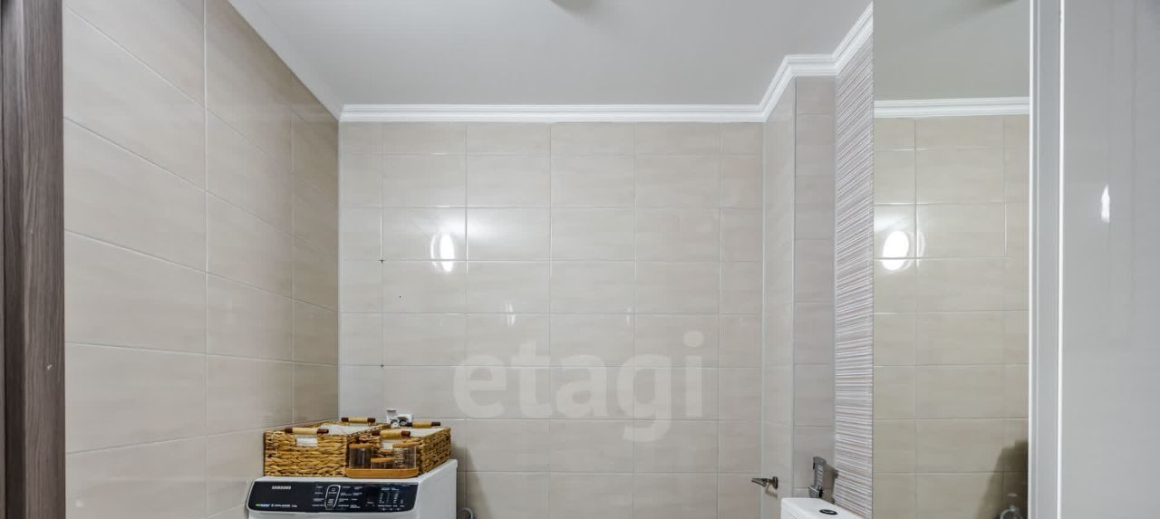 • Санузел: Ванная комната совмещена с санузлом, установлена стиральная машина и гигиенический душ для вашего удобства.
