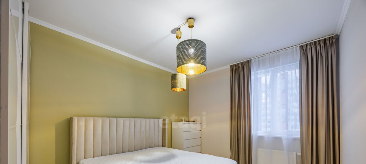 • Спальня: Уютная спальня с двуспальной кроватью и вместительным шкафом-купе для хранения вещей. Окна выходят во двор, что создает тихую и спокойную атмосферу.