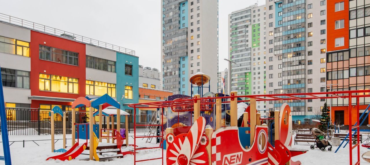 Район обладает развитой инфраструктурой: во дворе находятся несколько школ и детских садов, а также все необходимые магазины, аптеки и пекарни в шаговой доступности. Много парковых зон для прогулок, что делает это место идеальным для семейного проживания.