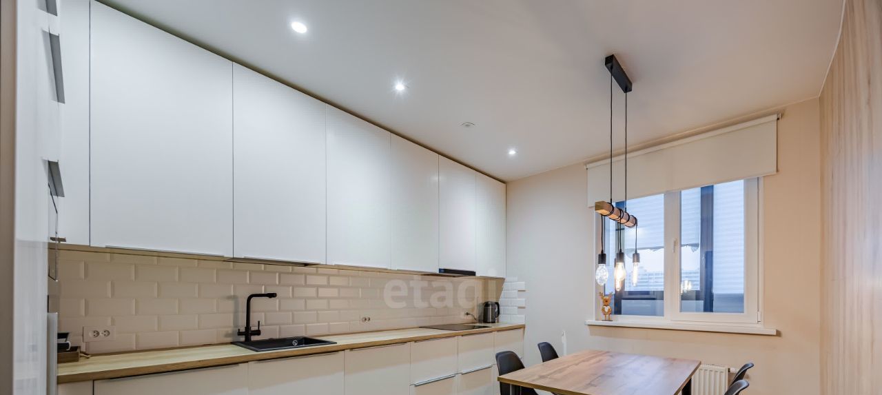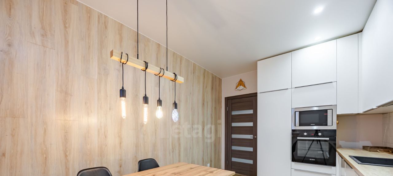 • Кухня: Просторная кухня, идеально подходящая для большой семьи. Она укомплектована всей необходимой бытовой техникой: индукционной плитой, духовым шкафом, микроволновой печью, вытяжкой, посудомоечной машиной и чайником.