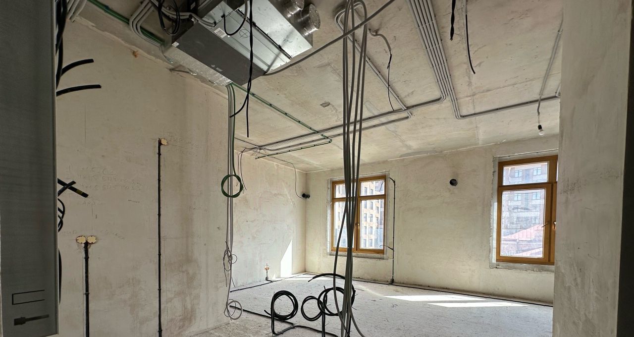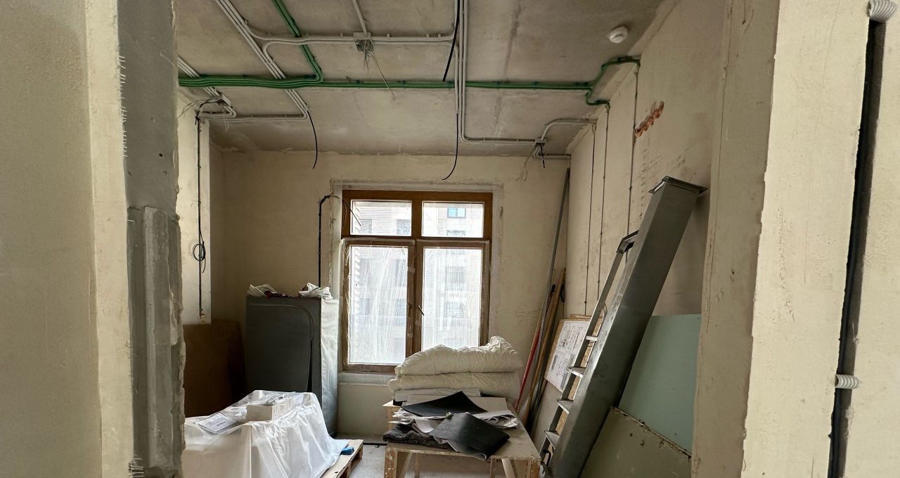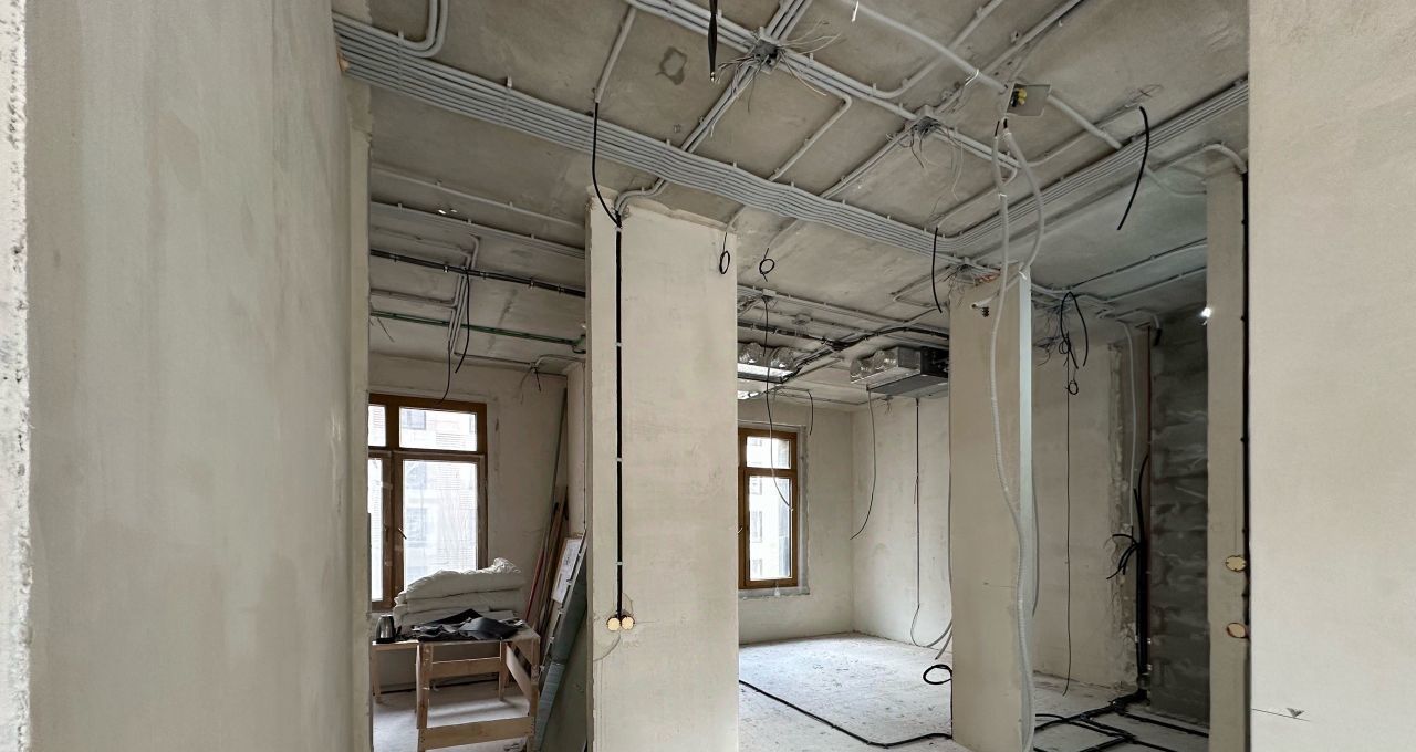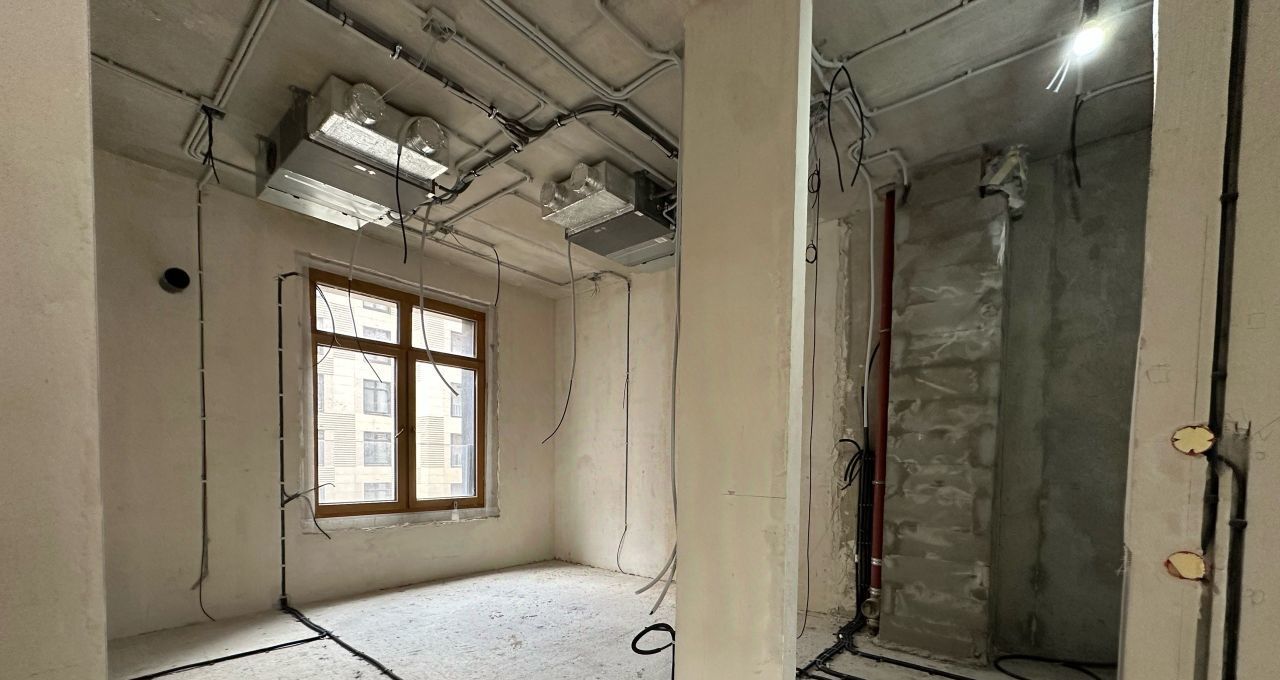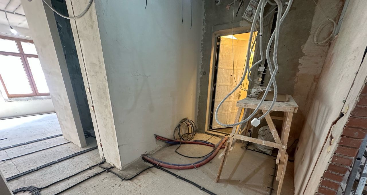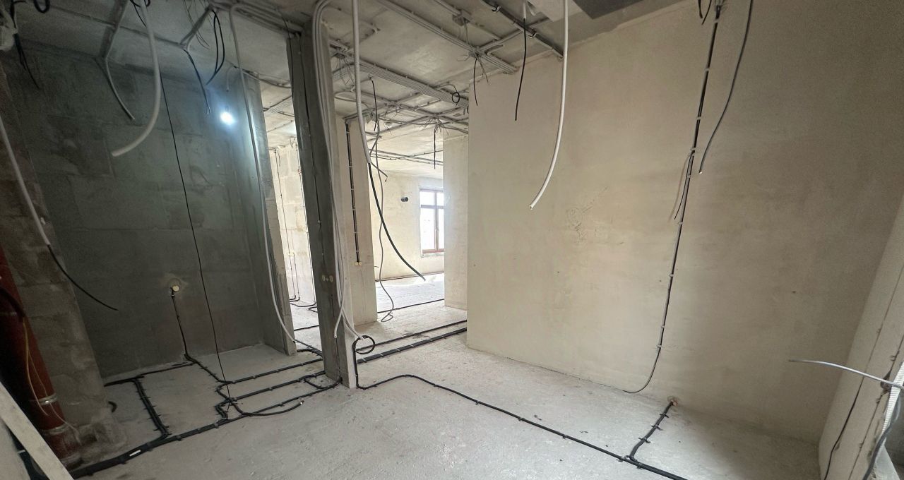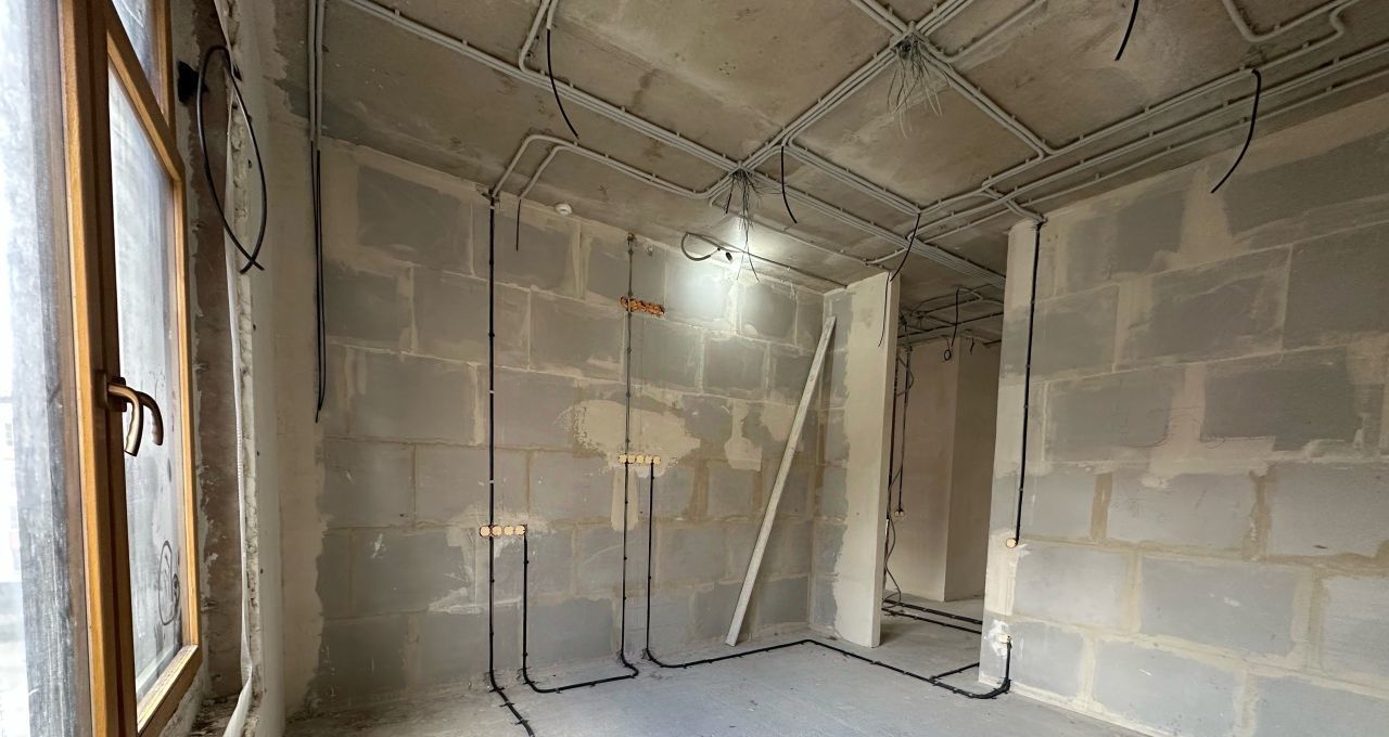 В квартире выполнен монтаж перегородок и разводка электрики (согласно дизайн-проекту).