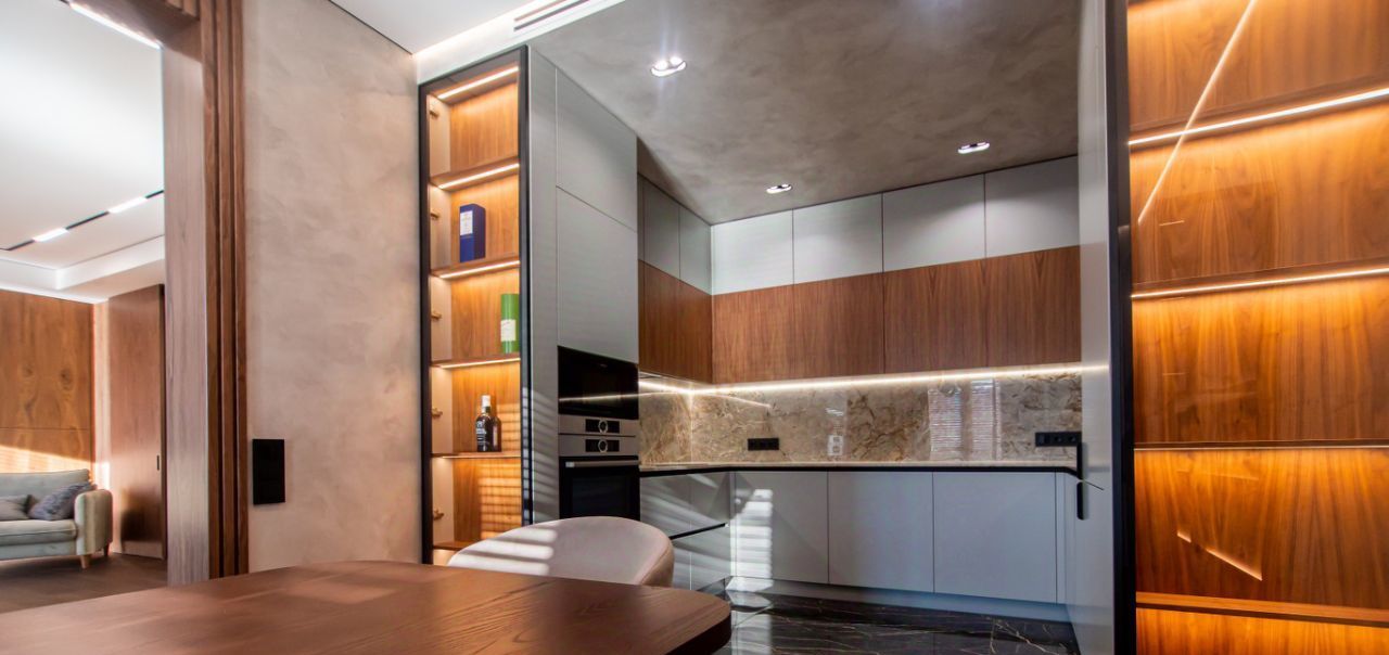 В квартире выполнен качественный ремонт и мебелирована по дизайн проекту, установлена вентиляционная система, кондиционирование, два сан узла, отдельная постирочная, в каждой спальня своя гардеробная. Делали для себя, но в квартире ни кто не проживал.