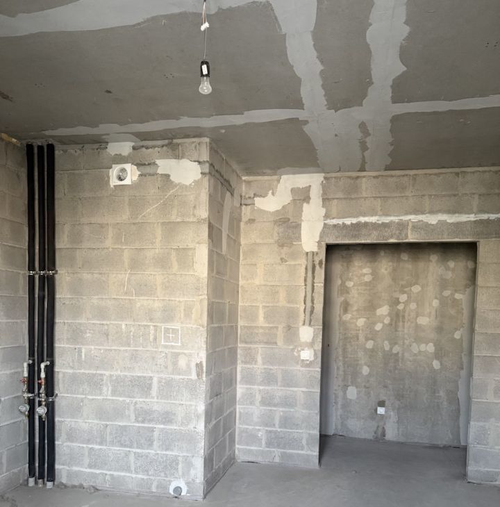 Черновая отделка (стены в бетоне). Планировка позволяет реализовать как классическую трехкомнатную, так и евро планировку с просторной кухней-гостиной.