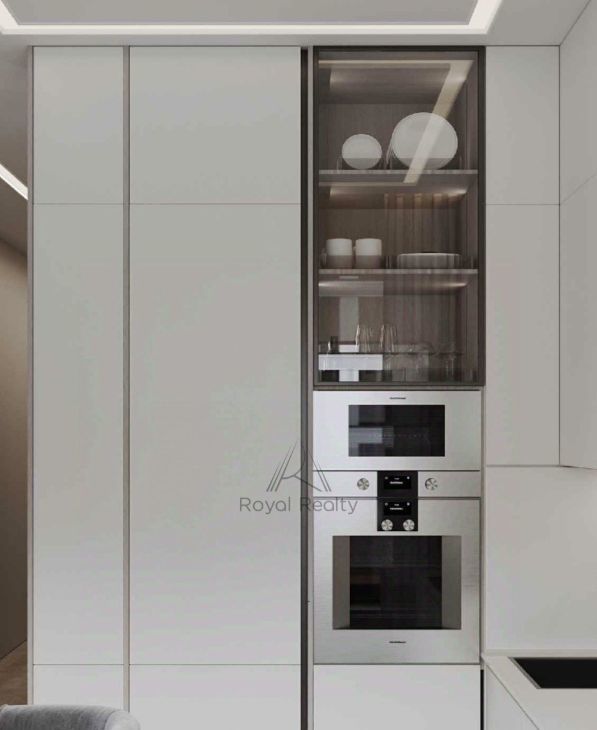 Внутри квартиры выполнен роскошный ремонт с использованием только качественных и дорогих материалов. Удобная планировка включает в себя мастер-спальню с просторной гардеробной, современную кухню-гостиную, полностью оснащенной необходимой техникой для комфортного проживания, два санузла и кабинет, который можно легко переоборудовать в детскую комнату.