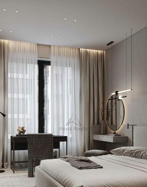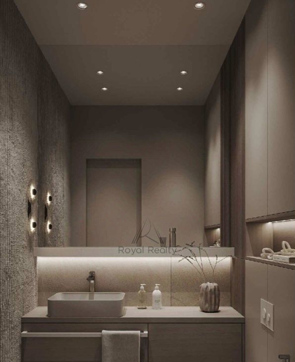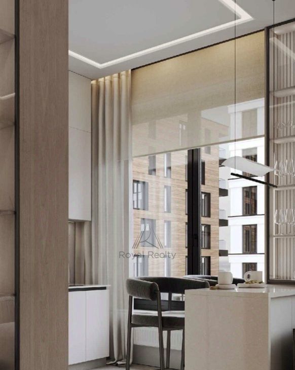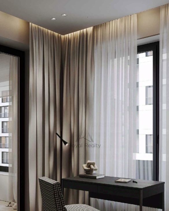 Внутри квартиры выполнен роскошный ремонт с использованием только качественных и дорогих материалов. Удобная планировка включает в себя мастер-спальню с просторной гардеробной, современную кухню-гостиную, полностью оснащенной необходимой техникой для комфортного проживания, два санузла и кабинет, который можно легко переоборудовать в детскую комнату.