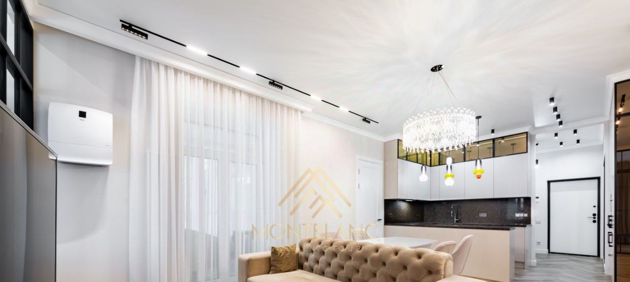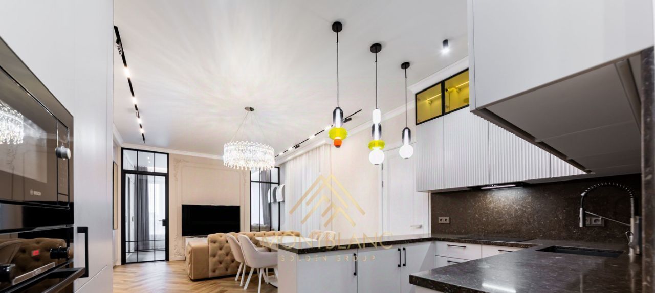 На Петровском 5 сдается на длительный срок просторная квартира с безупречной планировкой: две отдельные комнаты и элегантная кухня-гостиная.