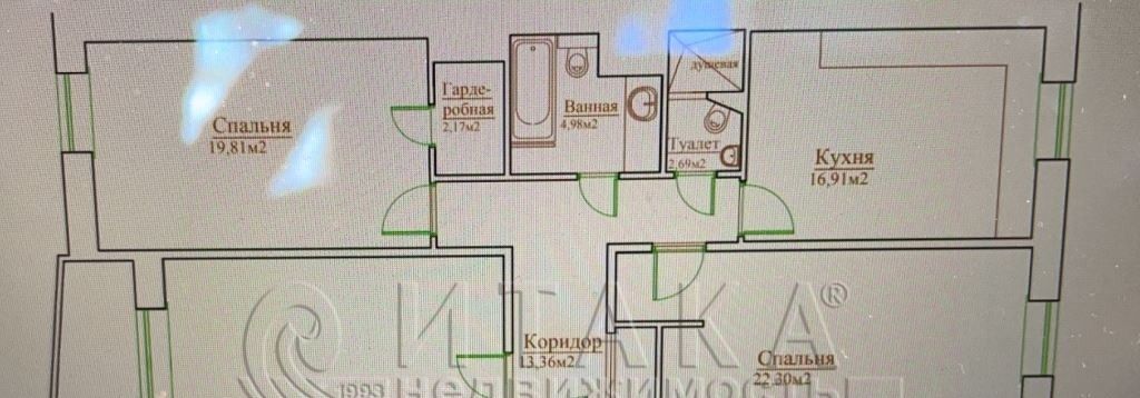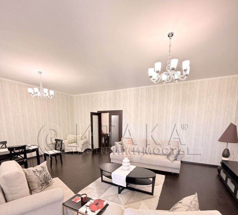 Две спальни - 22 и 20 кв.м, в одной из них гардеробная, гостиная 42 кв.м. просторная кухня - 17 м.кв.