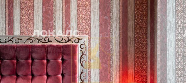 В отделке использовались премиальные итальянские отделочные материалы: натуральная мраморная плитка на стенах и тканевые обои Зибрано.