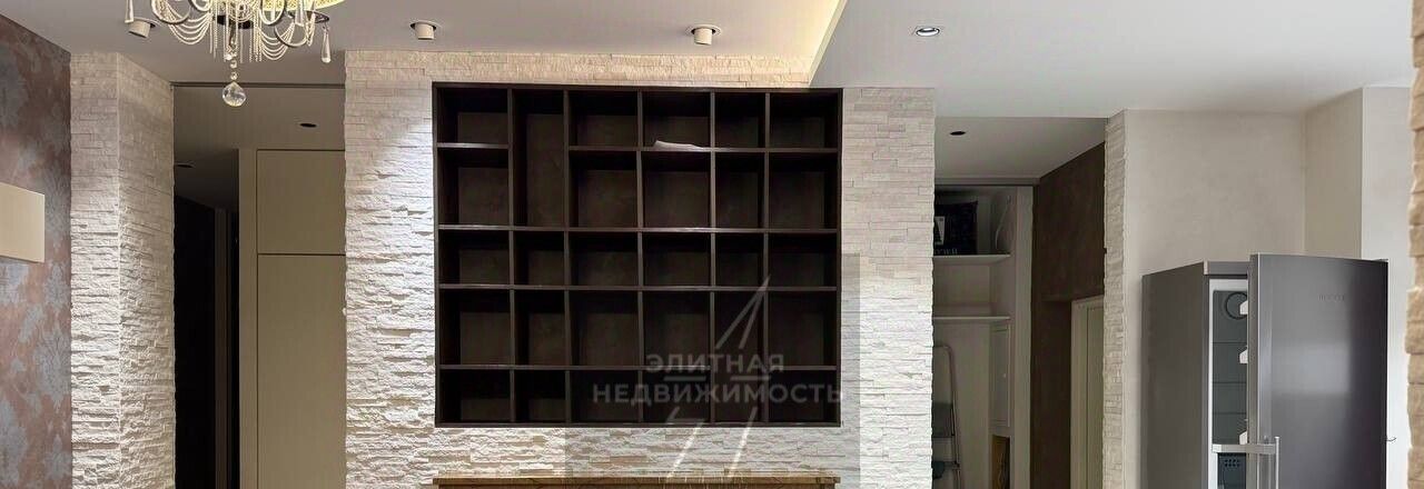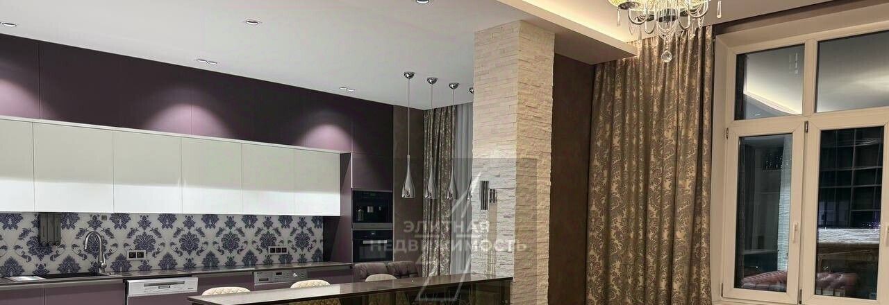 Внутреннее убранство квартиры производит приятное впечатление. Помещение выполнено с использованием отделочных материалов премиумкласса, которые подчёркивают статус жилья. Высокие потолки добавляют пространству воздушности и делают его ещё более просторным. Кухня оборудована современной бытовой техникой.