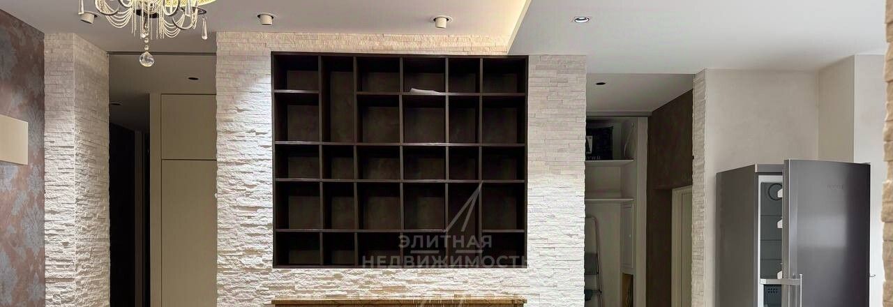 Внутреннее убранство квартиры производит приятное впечатление. Помещение выполнено с использованием отделочных материалов премиумкласса, которые подчёркивают статус жилья. Высокие потолки добавляют пространству воздушности и делают его ещё более просторным. Кухня оборудована современной бытовой техникой.