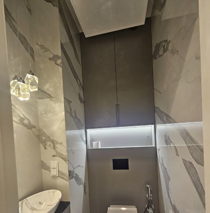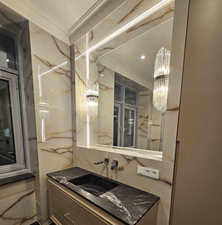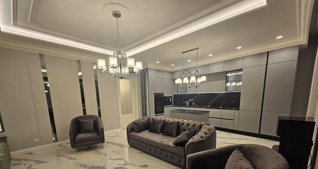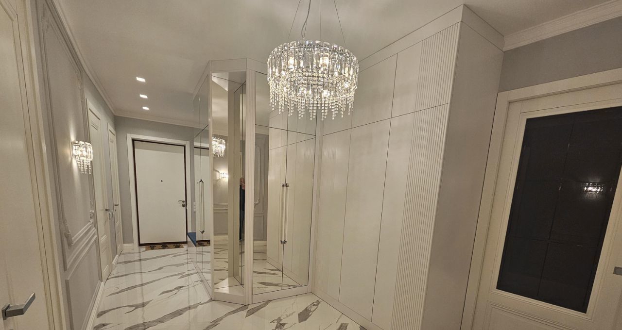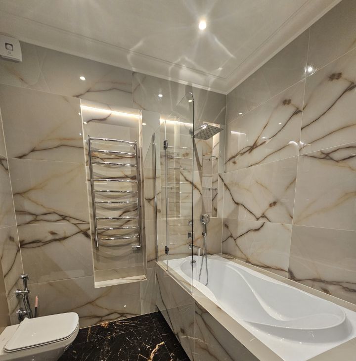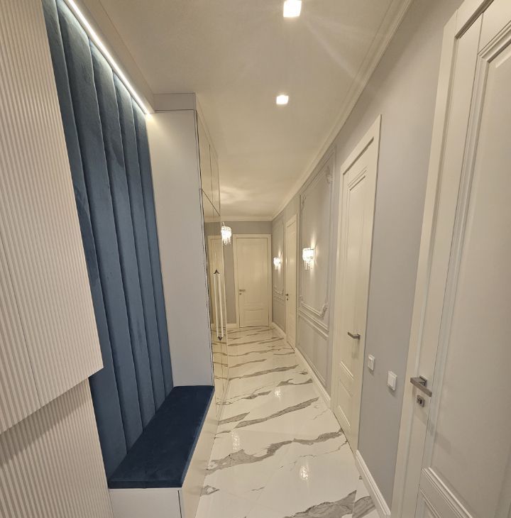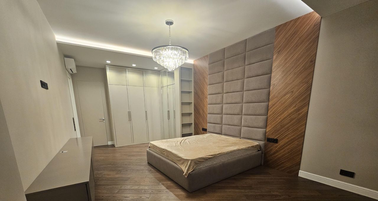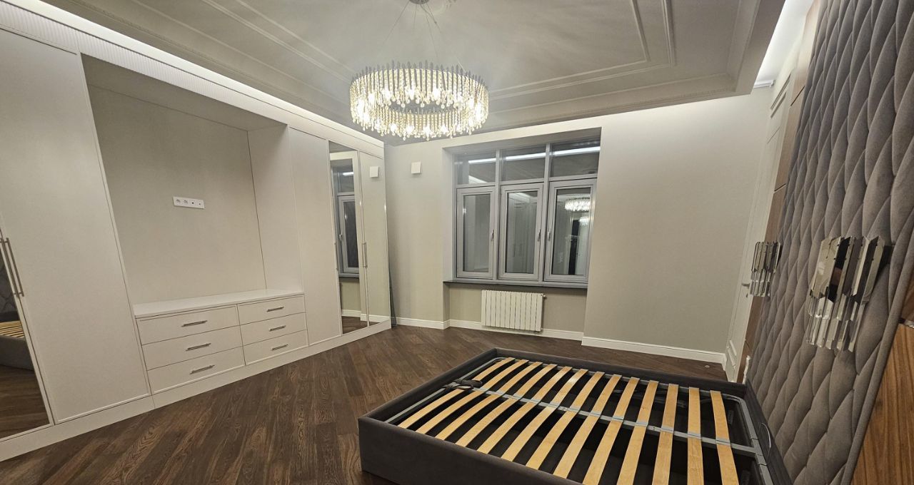 Сдаётся просторная трёхкомнатная квартира с дизайнерским ремонтом в ЖК "Премьер Палас". Ремонт окончен в 2025 году. В квартире никто не жил. Квартира разделена на следующие комнаты: две мастер-спальни со своими совмещенными санузлами, гостиная-кухня, постирочная, гостевой санузел.
