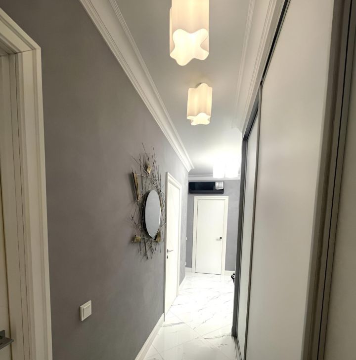 Вся необходимая бытовая техника, теплый пол, кондиционер, большое количество мест для хранения, одно парковочное место в паркинге входит в стоимость.