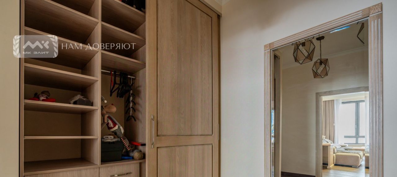 В квартире множество мест для храниия: в холле установлены два глубоких шкафа-купе, оборудована гардеробная в одной из спален и шкаф во второй.