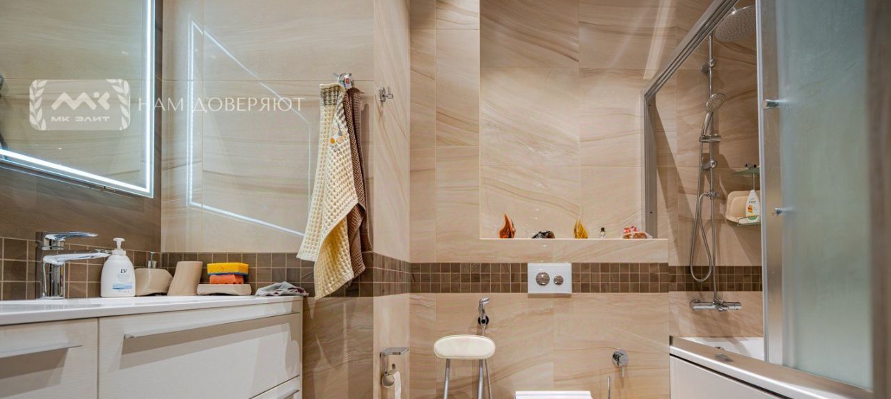 Для вашего комфорта в квартире представлен: робот-пылесос, пылесос Karcher, гладильная доска, утюг, отпариватель, водяной электросушитель в ванной.