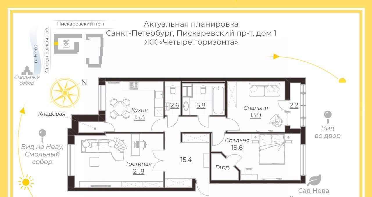 Арт. 128602630 Квартира со свежим ремонтом и удобной планировкой готова для жизни и ждет ответственных арендаторов. Вас ждет круглосуточный вид на воду, исторические доминанты, а также самые красивые закаты!