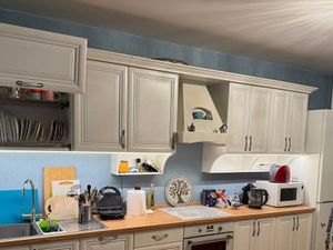 Квартира с мебелью, есть бытовая техника: стиральная машина, холодильник, посудомоечная машина, духовой шкаф, микроволновая печь, чайник. Раздельный санузел и смешанная ванная.