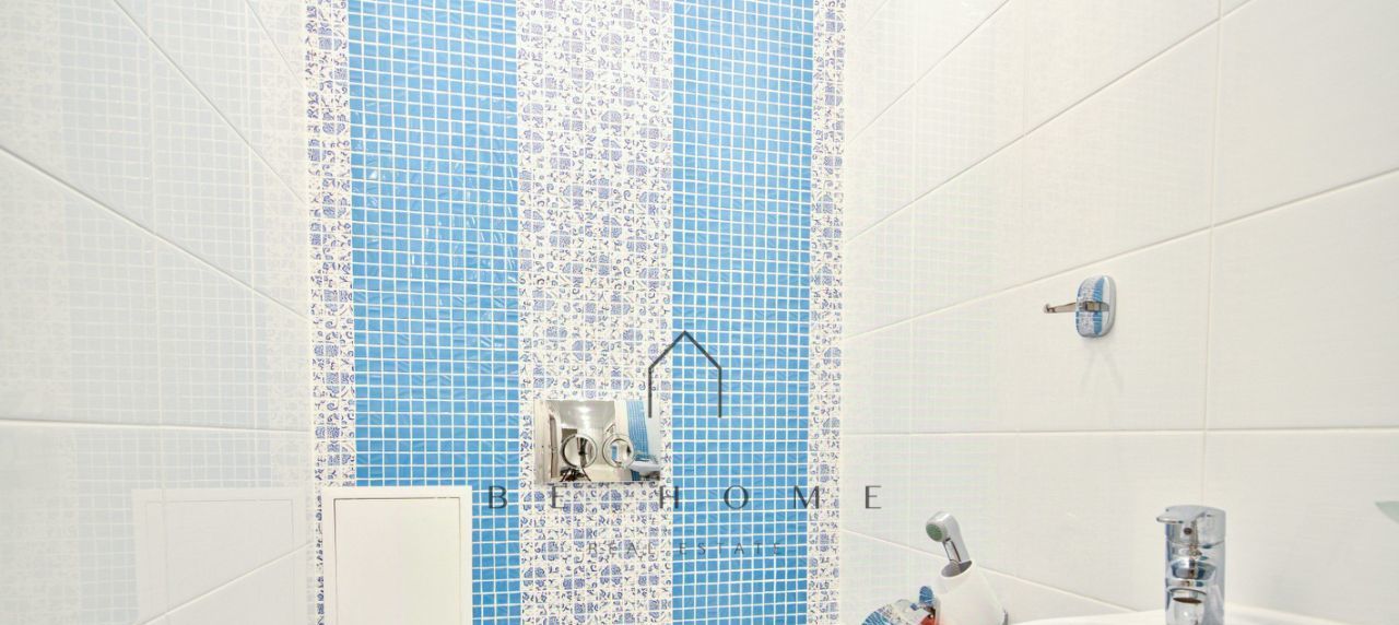 Две комнаты с двуспальными кроватями, большая гостиная с диваном. Две ванные комнаты: одна с ванной и гостевой санузел.