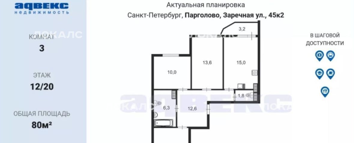 3-к кв. Санкт-Петербург пос. Парголово, Заречная ул., 45к2 (80.0 м²)