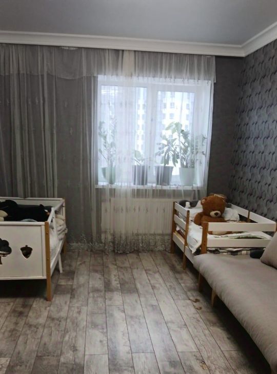 Две раздельные комнаты и большая гостиная-кухня идеально для семьи с детьми.
