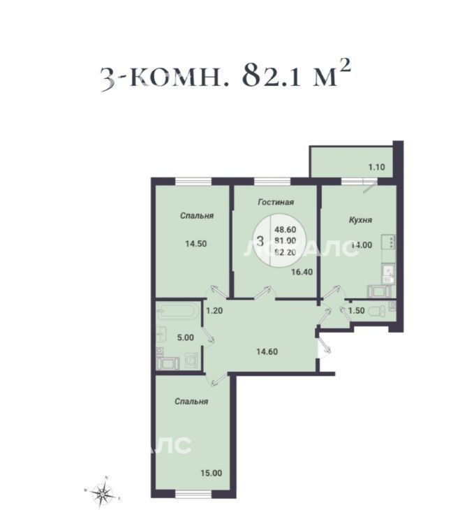 3-к кв. Санкт-Петербург пос. Шушары, просп. Старорусский, 8к2 (82.1 м²)