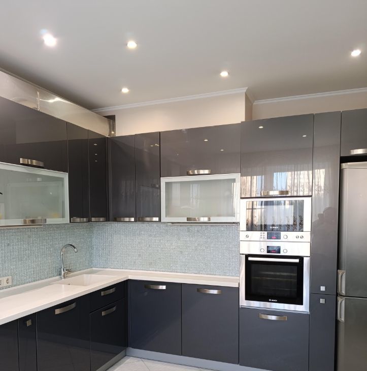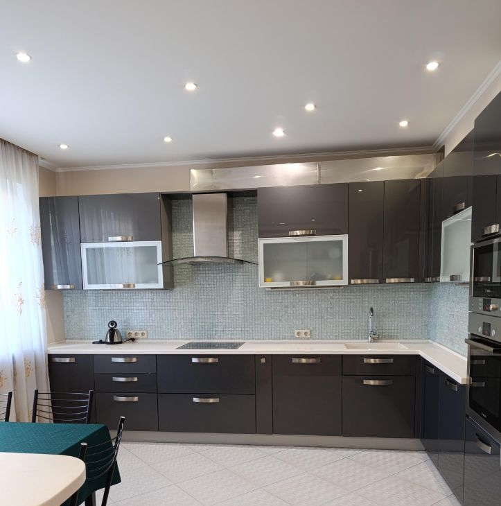 Кухня-гостиная. Большой кухонный гарнитур. Техника надежных брендов.
