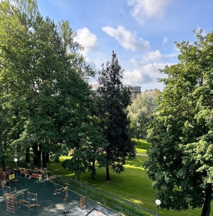 Три спальных комнаты, три гардеробных, два совмещенных санузла, тёплый пол, просторная лоджия, квартира на две стороны. Вид на парк - Объект КГИОП "Парк усадьба Ланских".