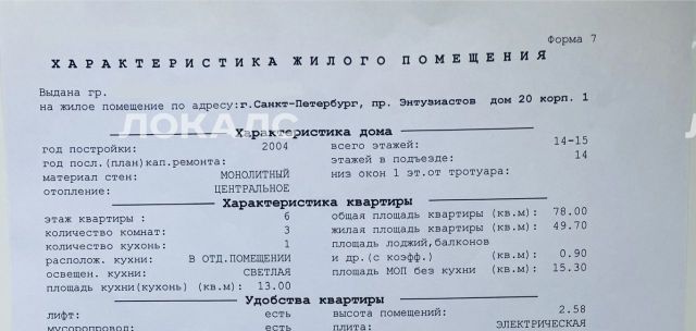 3-к кв. Санкт-Петербург просп. Энтузиастов, 20К1 (78.0 м²)
