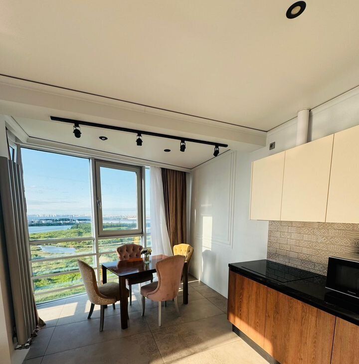 Видовая квартира с дизайнерским ремонтом . Дорогие материалы отделки . Возможно заключение договора аренды с юридическими лицами по безналу .