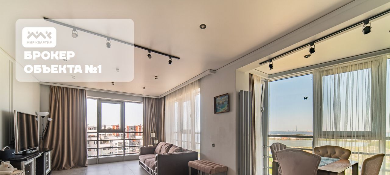 Арт. 45313590 Предлагается в аренду 3-комнатная квартира общей площадью 95 кв. м с панорамными окнами на Финский залив и потрясающие закаты!