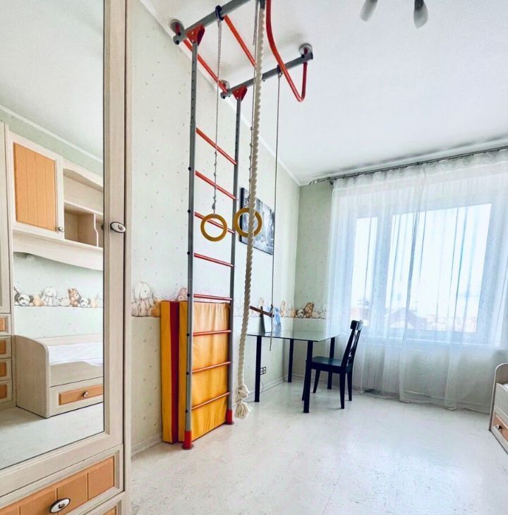 Планировка квартиры позволяет удобно разместиться большой семье. Есть отдельные спальни для детей и приватная мастер-спальня с большой гардеробной для родителей.
