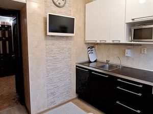 Есть вся необходимая бытовая техника: микроволновка, плита, холодильник, стиральная машина, посудомойка, телевизор.