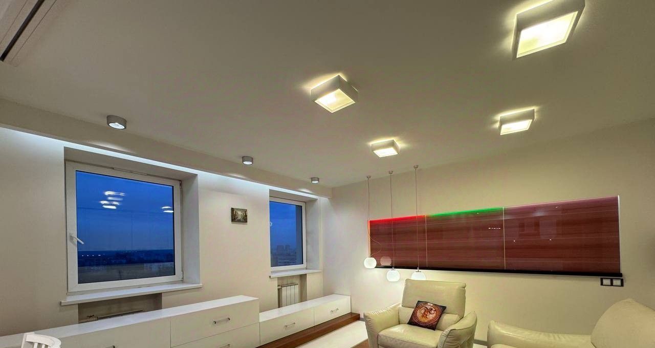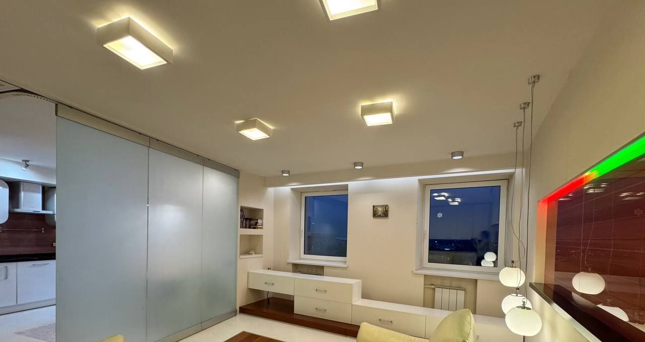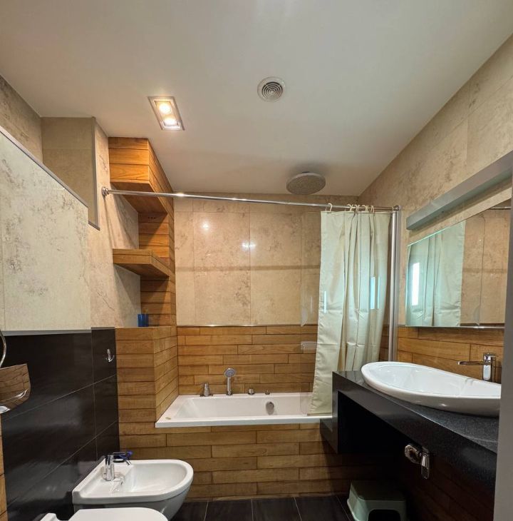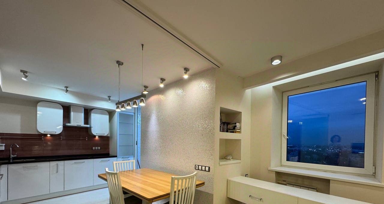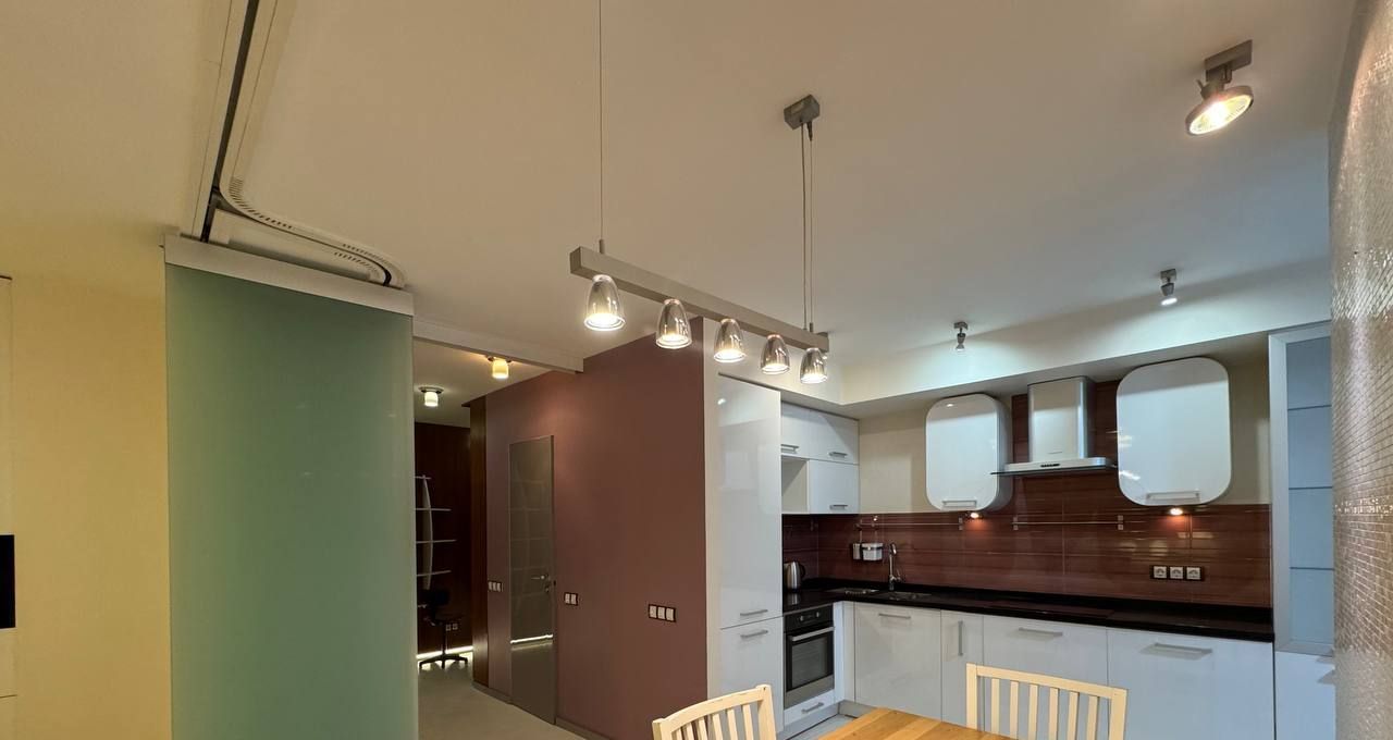 В квартире выполнен евроремонт из качественных материалов с индивидуальным дизайном. Есть вся необходимая мебель и бытовая техника (посудомойки нет).