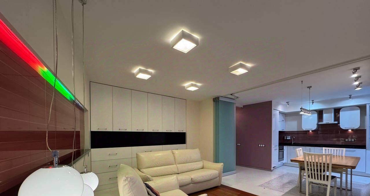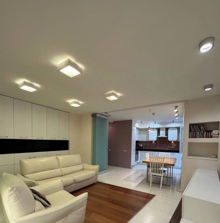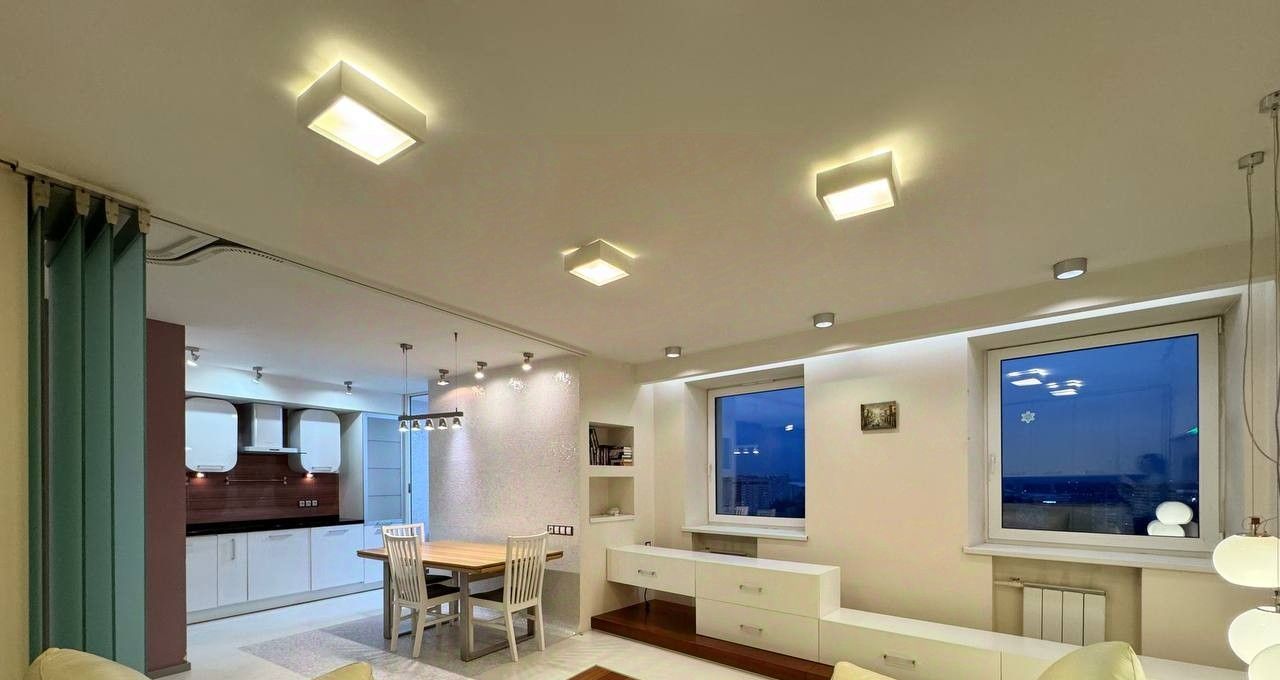 Квартира двухсторонняя, состоит из двух изолированных комнат, большой кухни-гостиной, разделенной на две зоны (обеденная и гостевая), просторный холл. Два раздельных санузла (один с полноценной ванной и гостевой санузел). Полы с подогревом