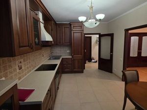 Сдается на длительный срок большая 3-х комнатная квартира класса Люкс. Все комнаты изолированы, выполнен дизайнерский ремонт с использованием дорогих качественных отделочных материалов. Квартира полностью меблирована и оснащена всей необходимой бытовой техникой. Окна из спальни выходят в тихий двор. Имеется детская комната на 2 детей, оснащенная спортивным уголком, удобным местом для творчества и работы за столом. Уютная кухня оснащена всей необходимой бытовой техникой, фильтром для питьевой воды, большим двухдверным холодильником. Кухня объединена с лоджией которая выполнена в виде небольшой террасы с барной стойкой. Два санузла. Просторная прихожая, большая гостиная с удобным кожаным диваном и огромным плазменным телевизором. В квартире установлены кондиционеры. Есть потайной сейф. Охранная сигнализация.