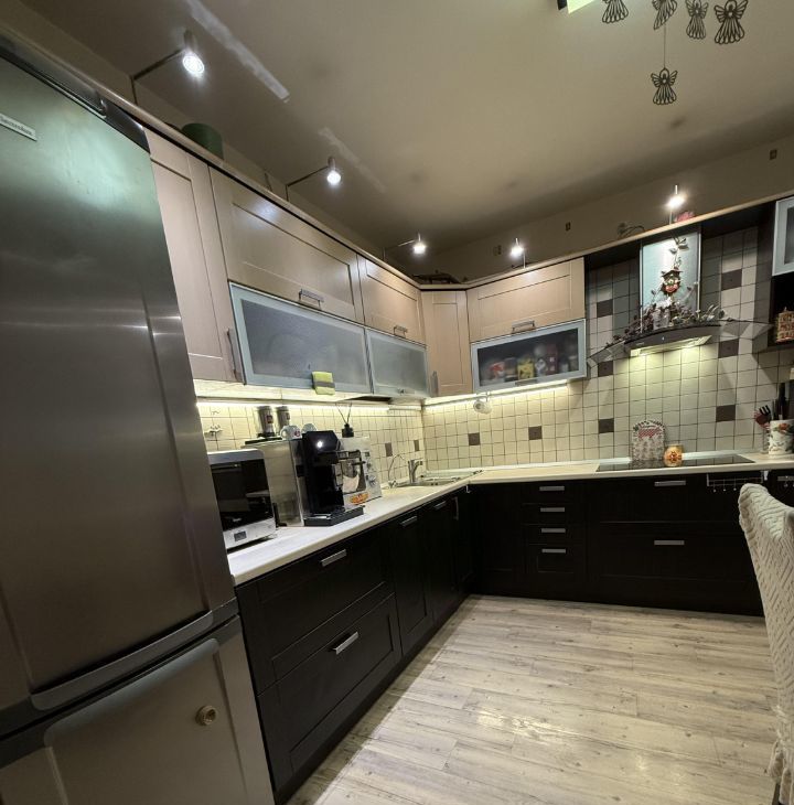 Продается просторная уютная трехкомнатная квартира с балконом и верандой в современном доме, построенном в 2007 году. Общая площадь квартиры составляет 82.1 кв.м., жилая площадь — 53.6 кв.м. Кухня площадью 10.66 кв.м. с выходом на балкон отлично подойдет как для семейных обедов, так и для уютных вечеров с друзьями. Кухня совмещена с гостиной площадью 19,56 кв.м. Из гостиной выход на веранду площадью 12,2 кв.м, которая может стать великолепной четвертой комнатой в этой квартире. Квартира находится на 6 этаже 17-этажного дома.