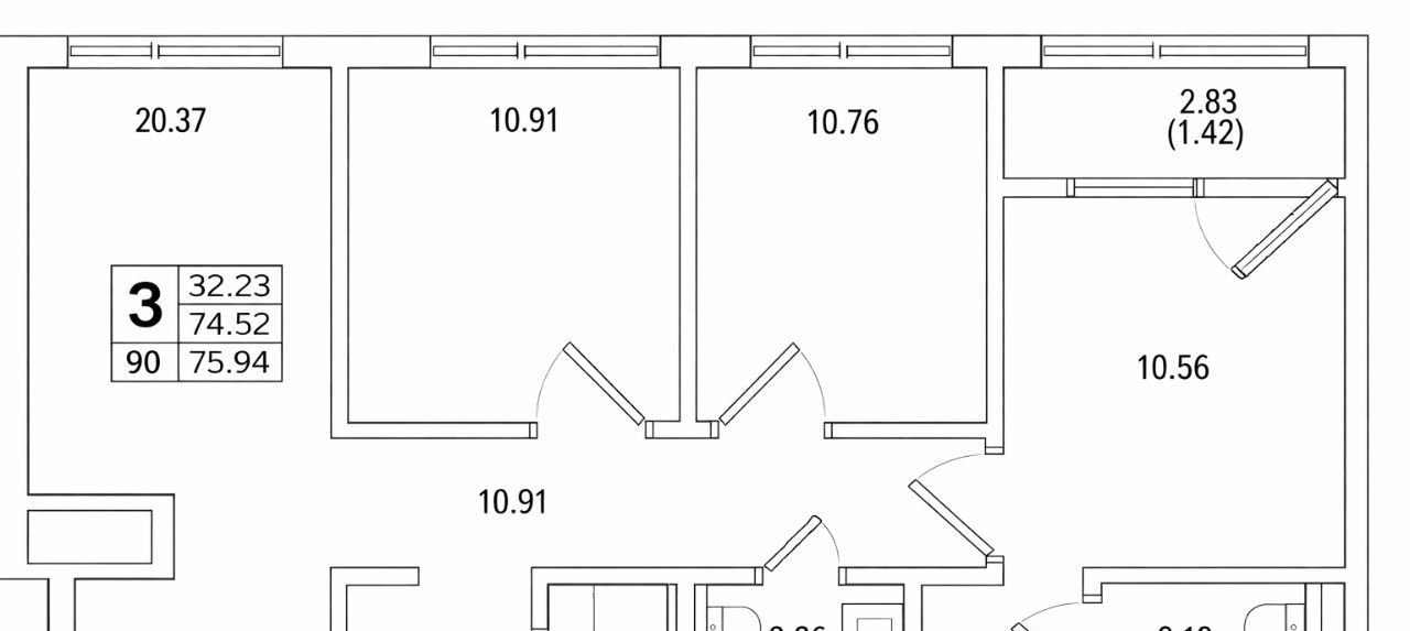 3-к кв. Санкт-Петербург просп. Крузенштерна, 13 (75.0 м²)