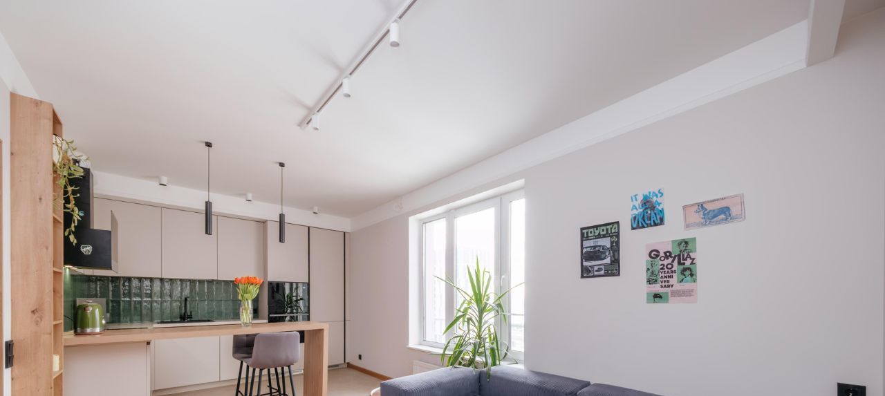 В квартире предусмотрено разноуровневое освещение, что делает каждую зону и помещение продуманным и по домашнему уютным. В спальне много систем хранения и свой сан узел сан. с ванной, теплые полы.
