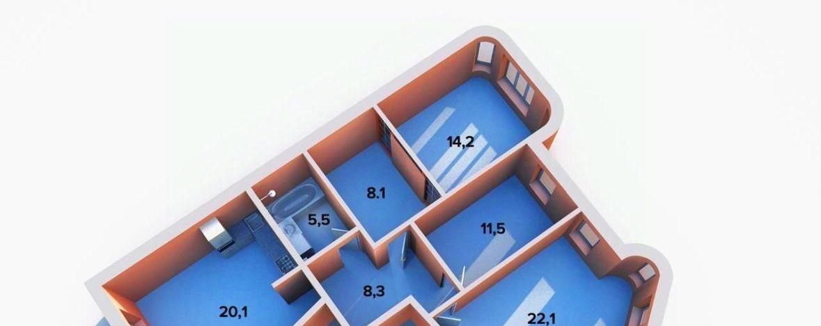 • Три изолированные спальни: 22,1 / 14,2 / 11,5 м²
