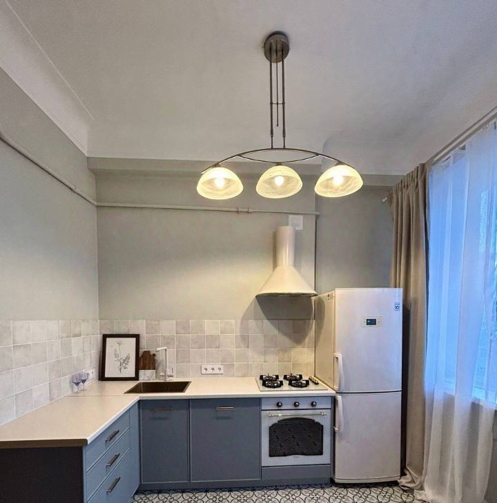 -Уютная кухня, зонированная с особым вниманием к комфорту.